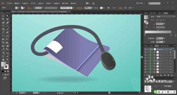 2、使用蓝紫色填充折叠布的正面,再用透明度为40%的灰黑色渐变填充暗光区域。