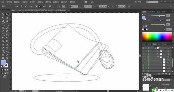 1、使用钢笔绘制出折叠的布的左侧面与正面还有右侧面的细节元素路径。