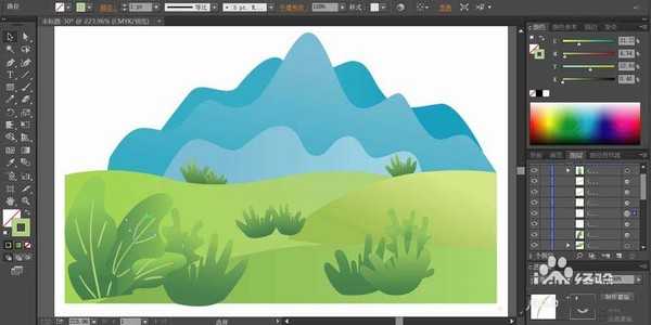 ai怎么手绘漂亮水彩效果的山水风景插画?