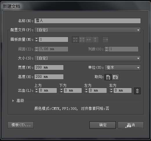 1、打开ai软件,新建文档,命名为雪人,如图所示,