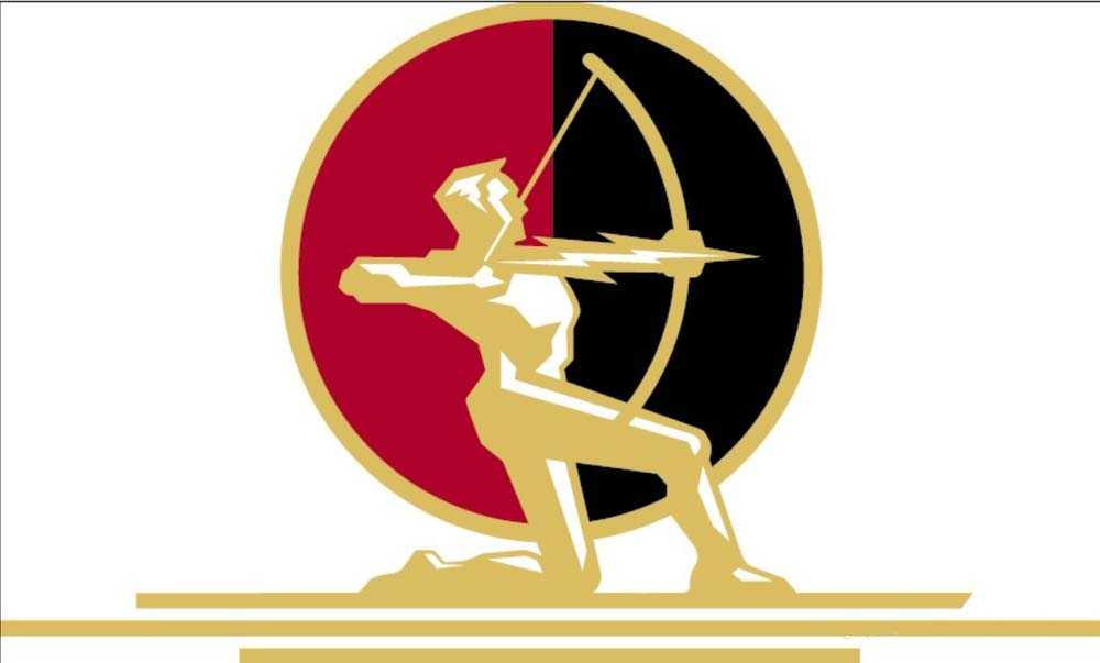 9、用金色填充弓箭与弓弦的路径,弓弦与人物相交的地方填充为白色,人物标志设计完成!