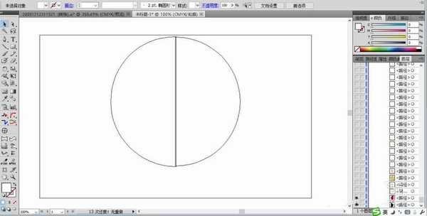 1、先使用圆形工具画出一个正圆形,再用一个长长的矩形截取出两个半圆形,让这两个半圆形对称出现。