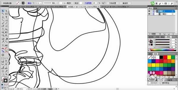 4、这一步重点去描绘圣诞老人的大口袋以及上面的色调不同的区域路径。