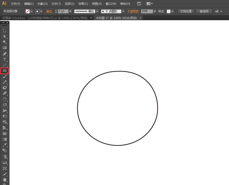1、新建画板,使用椭圆工具画出一个圆形,然后用直接选择工具调整形状,这是小猫咪的头部。