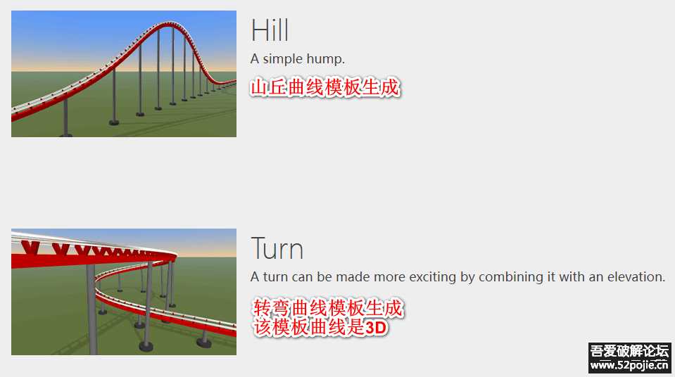 曲线模板觉得有些意思,官网有介绍,例如上图中的hill是这样的,到turn是大转弯,试了下确实3D但是单个视图看不出来。