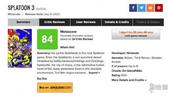《喷射战士3(斯普拉遁3)》媒体评分已经解禁,目前M站均分84,23家媒体给出好评,1家中评 ????。本作将于9月9日登陆Switch,全区支持中文。
