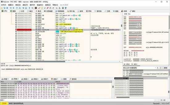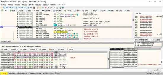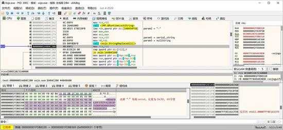 我们用 x64dbg 打开其主程序。进行授权过程的调试,在项目界面打开授权文件(第1种模式)后,中断在如下位置(先下好断点,再打开授权文件):