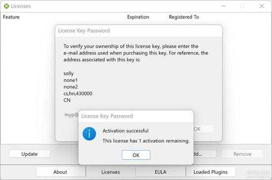 因为后面还有解密过程,并且是用的 email 作为密码解密,程序会从授权信息数据库查询以前的email,这样就可以不用用户来输入解密密码了,如下所示,查询授权文件数据库(是一个全文加密的SQLite数据):