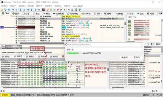 上图中,rcx 指向一个对象,[rcx + 0x08] 就是属性和成员表了。