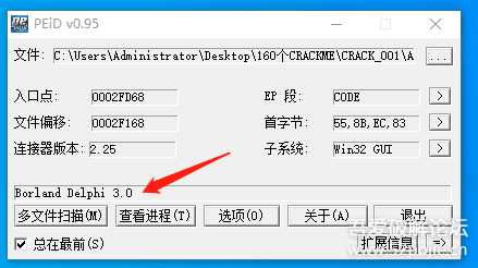 通过用PEID查壳。我们发现无壳,是Delphi语言程序。