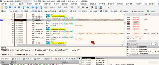 013FF6D1 | 8BEC | mov ebp,esp |013FF6D3 | 83E4 F8 | and esp,FFFFFFF8 |013FF6D6 | 81EC 3C070000 | sub esp,73C |013FF6DC | 803D EC135C01 00 | cmp byte ptr ds:[15C13EC],0 |013FF6E3 | 53 | push ebx |013FF6E4 | 56 | push esi | esi:"p\f)"013FF6E5 | 57 | push edi |013FF6E6 | 8BD9 | mov ebx,ecx |013FF6E8 | 0F85 EC010000 | jne patch跳过启动升级检测1_保密.13FF8DA |013FF6EE | A0 49E15701 | mov al,byte ptr ds:[157E149] |013FF6F3 | 3C FF | cmp al,FF |013FF6F5 | 75 19 | jne patch跳过启动升级检测1_保密.13FF710 |013FF6F7 | 33D2 | xor edx,edx |013FF6F9 | B9 2CA15501 | mov ecx,patch跳过启动升级检测1_保密.155A12C | 155A12C:L"SDS"013FF6FE | E8 0DFD72FF | call <patch跳过启动升级检测1_保密.sub_B2F410> |013FF703 | 3D 689AC178 | cmp eax,78C19A68 |013FF708 | 0F94C0 | sete al |013FF70B | A2 49E15701 | mov byte ptr ds:[157E149],al |013FF710 | 3C 01 | cmp al,1 | 改这里经测试不可以!013FF712 | 0F84 C2010000 | je patch跳过启动升级检测1_保密.13FF8DA | 尝试在这里跳过!013FF718 | 83CA FF | or edx,FFFFFFFF |013FF71B | 8BCB | mov ecx,ebx |013FF71D | E8 8E0473FF | call <patch跳过启动升级检测1_保密.sub_B2FBB0> |013FF722 | 85C0 | test eax,eax |013FF724 | 75 07 | jne patch跳过启动升级检测1_保密.13FF72D |013FF726 | 5F | pop edi |013FF727 | 5E | pop esi | esi:"p\f)"013FF728 | 5B | pop ebx |013FF729 | 8BE5 | mov esp,ebp |013FF72B | 5D | pop ebp |013FF72C | C3 | ret |013FF72D | 8D4424 24 | lea eax,dword ptr ss:[esp+24] |013FF731 | C74424 24 10000000 | mov dword ptr ss:[esp+24],10 |013FF739 | 894424 4C | mov dword ptr ss:[esp+4C],eax |013FF73D | 0F57C0 | xorps xmm0,xmm0 |013FF740 | 8D4424 34 | lea eax,dword ptr ss:[esp+34] |013FF744 | 66:0F134424 2C | movlpd qword ptr ss:[esp+2C],xmm0 |013FF74A | 50 | push eax |013FF74B | 8D4424 18 | lea eax,dword ptr ss:[esp+18] |013FF74F | 895C24 2C | mov dword ptr ss:[esp+2C],ebx |013FF753 | 50 | push eax |013FF754 | 6A 00 | push 0 |013FF756 | 66:0F134424 44 | movlpd qword ptr ss:[esp+44],xmm0 |013FF75C | C74424 50 00000000 | mov dword ptr ss:[esp+50],0 | [esp+50]:sub_A9DB90013FF764 | 66:0F134424 5C | movlpd qword ptr ss:[esp+5C],xmm0 |013FF76A | C74424 64 00000000 | mov dword ptr ss:[esp+64],0 |013FF772 | 66:0F134424 6C | movlpd qword ptr ss:[esp+6C],xmm0 |013FF778 | C74424 40 34000000 | mov dword ptr ss:[esp+40],34 | [esp+40]:"p\f)", 34:'4'013FF780 | C74424 4C 02000000 | mov dword ptr ss:[esp+4C],2 |013FF788 | C74424 54 01000000 | mov dword ptr ss:[esp+54],1 | [esp+54]:sub_A9DB90013FF790 | C74424 68 10000000 | mov dword ptr ss:[esp+68],10 | [esp+68]:&"0嫨"013FF798 | C74424 20 6BC5AA00 | mov dword ptr ss:[esp+20],<patch跳过启动升级检测1_保密 | [esp+20]:L"燐豺"013FF7A0 | C74424 24 44CDD011 | mov dword ptr ss:[esp+24],11D0CD44 |013FF7A8 | C74424 28 8CC200C0 | mov dword ptr ss:[esp+28],C000C28C |013FF7B0 | C74424 2C 4FC295EE | mov dword ptr ss:[esp+2C],EE95C24F |013FF7B8 | FF15 704A4B01 | call dword ptr ds:[<&WinVerifyTrust>] ==>此处是数字签名校验的源头(1)修改之后启动文件被修改的提示就没了!