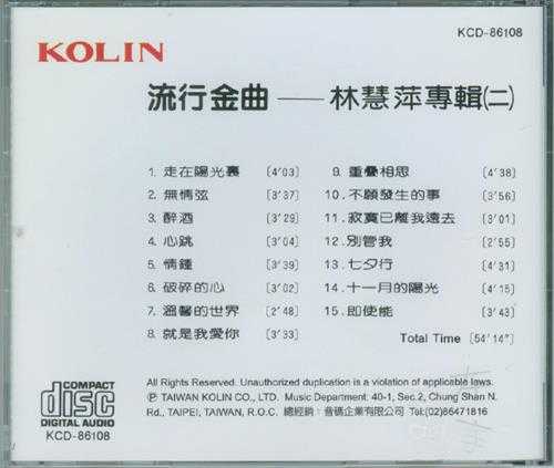 林慧萍1986-01-流行金曲一[歌林][WAV+CUE].rar: https://url27.ctfile.com/f/9388027-398552433-33c08f?p=559675(访问密码: 559675)