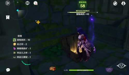 在到处推箱子的地方,你会发现另一个箱子。先朝前推,再向右推,就能找到普通宝箱,里面有冒险阅历,岩之印,精锻矿,幸运儿之杯和银冠等各种奖励。