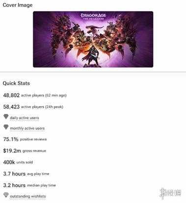 在Steam平台上,《龙腾世纪4》也收获了“多半好评”的评价,预估销量更是达到了40万。