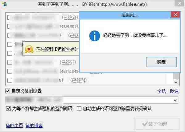 QQ群签到黑手是一款用来批量在QQ群中签到的工具,并支持签到的时候自定义位置。支持检测签到状态,已签到的QQ群会有提示;支持自定义模板,系统内置了一些模板,同时可自定义。工具由@木鱼制作!
